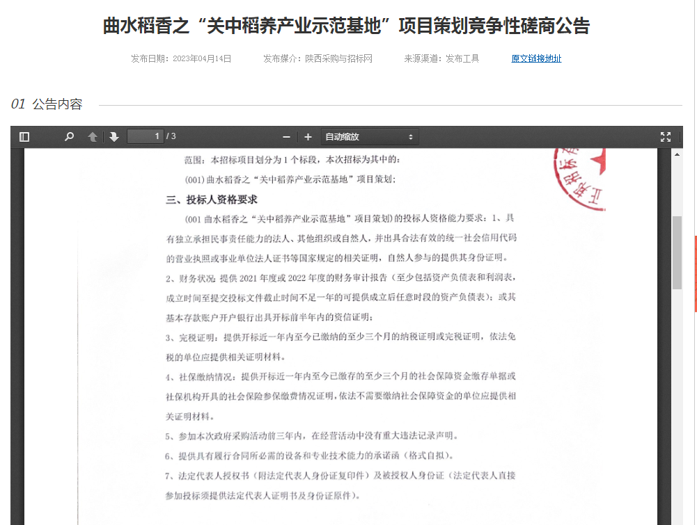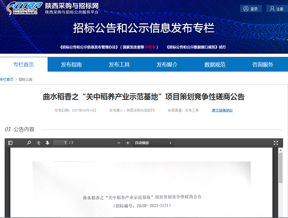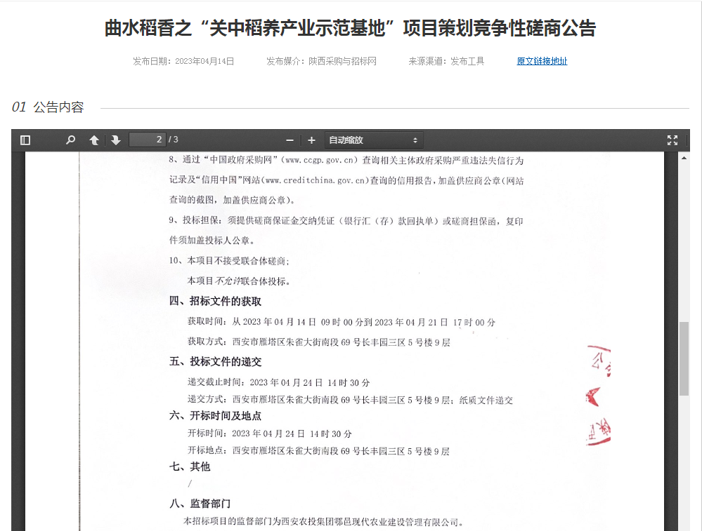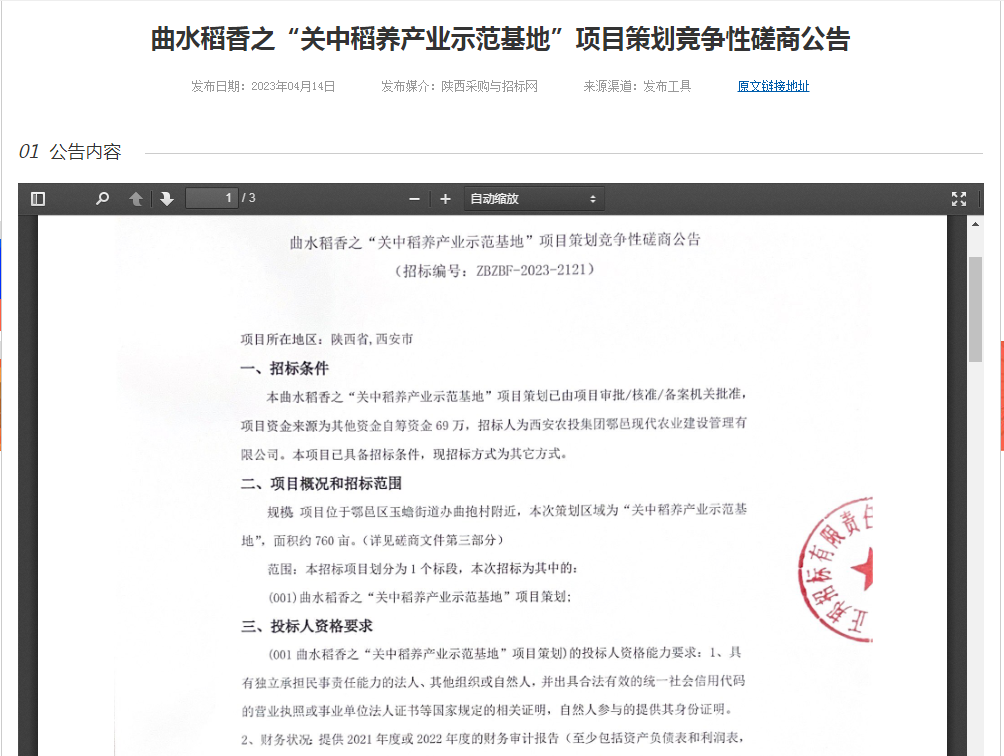 曲水稻香之“关中稻养产业示范基地”项目策划竞争性磋商公告