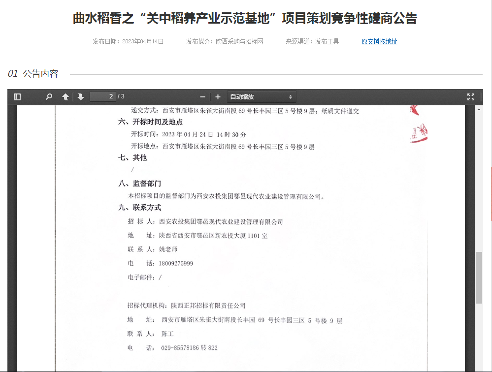 曲水稻香之“关中稻养产业示范基地”项目策划竞争性磋商公告-磋商公告-陕西正邦招标有限责任公司